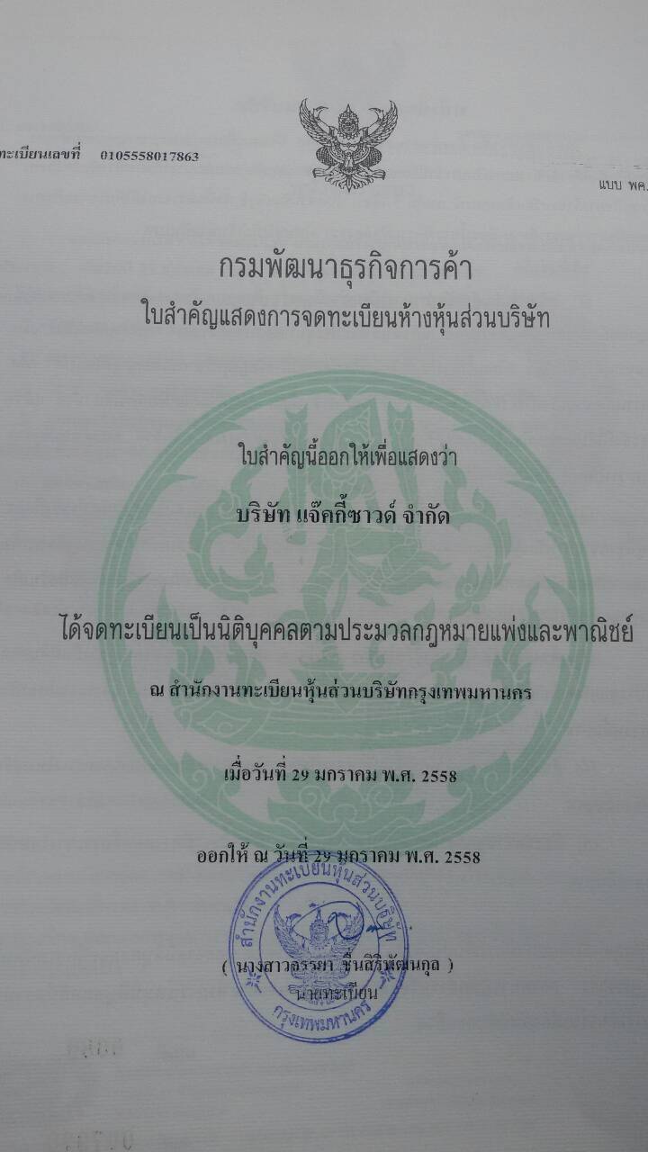 ในวันที่ 29 มกราคม 2558 ชื่อ บริษัท แจ๊คกี้ซาวด์ จำกัด