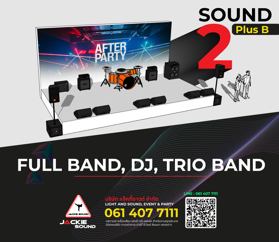 | SOUND 2 PLUS B | FOR TRIO BAND, DJ | FOR 300 PROPLE INDOOR | ลดพิเศษเหลือ 8,000 ฿ **ราคานี้ไม่ครอบคลุมงาน ในวันปีใหม่** **แพ็กเกจนี้ไม่รวมเวทีและฉากหลัง** **ระยะเวลา การใช้งาน 8 ชม./คิว** (ราคาปกติ 10,000 ฿) | |