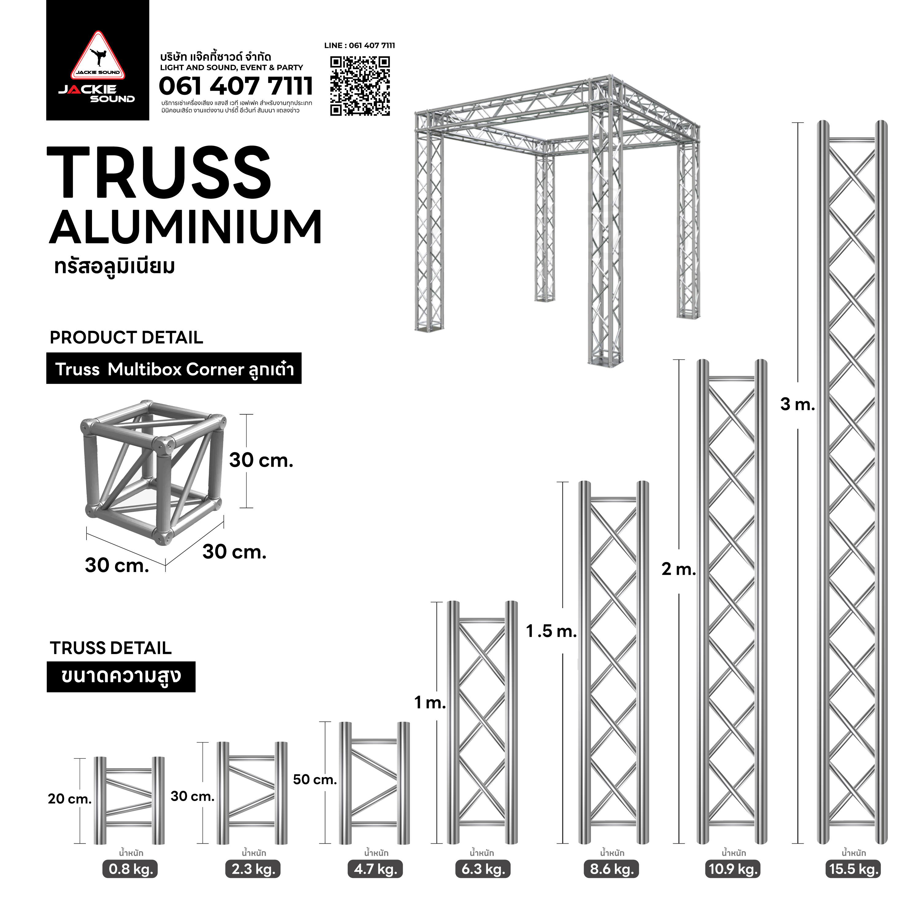 น้ำหนักเบา : โครงทรัสที่ทำจากอลูมิเนียมมีน้ำหนักเบา ทำให้เคลื่อนย้ายและติดตั้งได้ง่าย